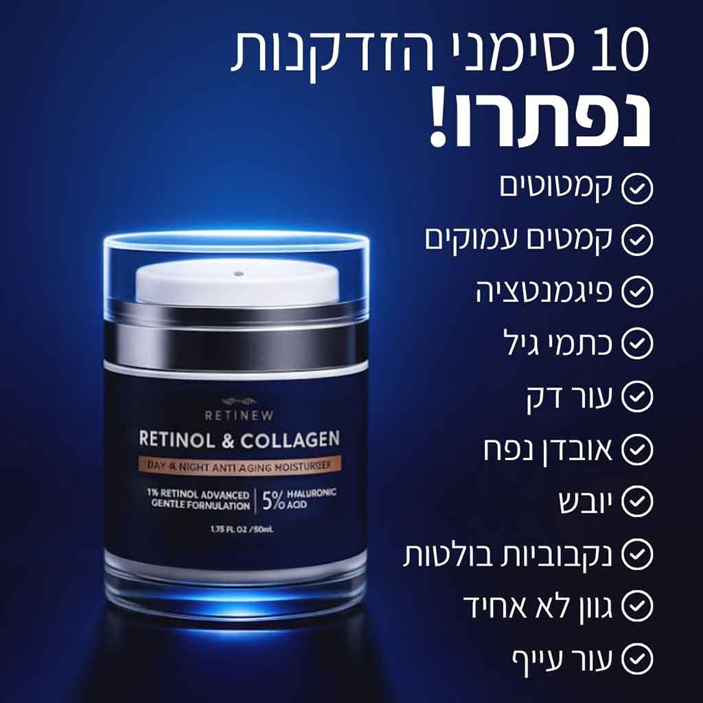 🌿 משלב רטינול, קולגן וחומצה היאלורונית עוצמתיים
