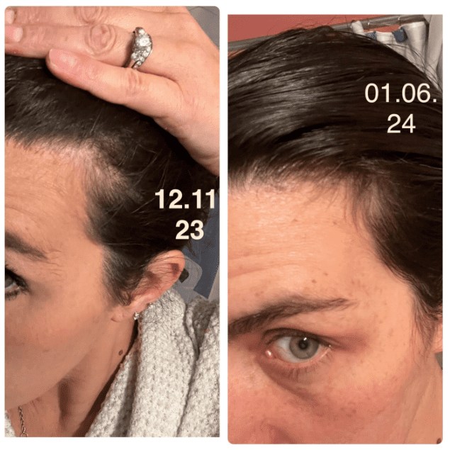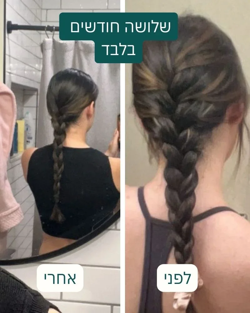 התחילו לצמוח שיערות חדשות בקו המצח ואני מרגישה שהשיער שלי אחרי הרבה שנים פשוט חזק, מלא יותר ורך."