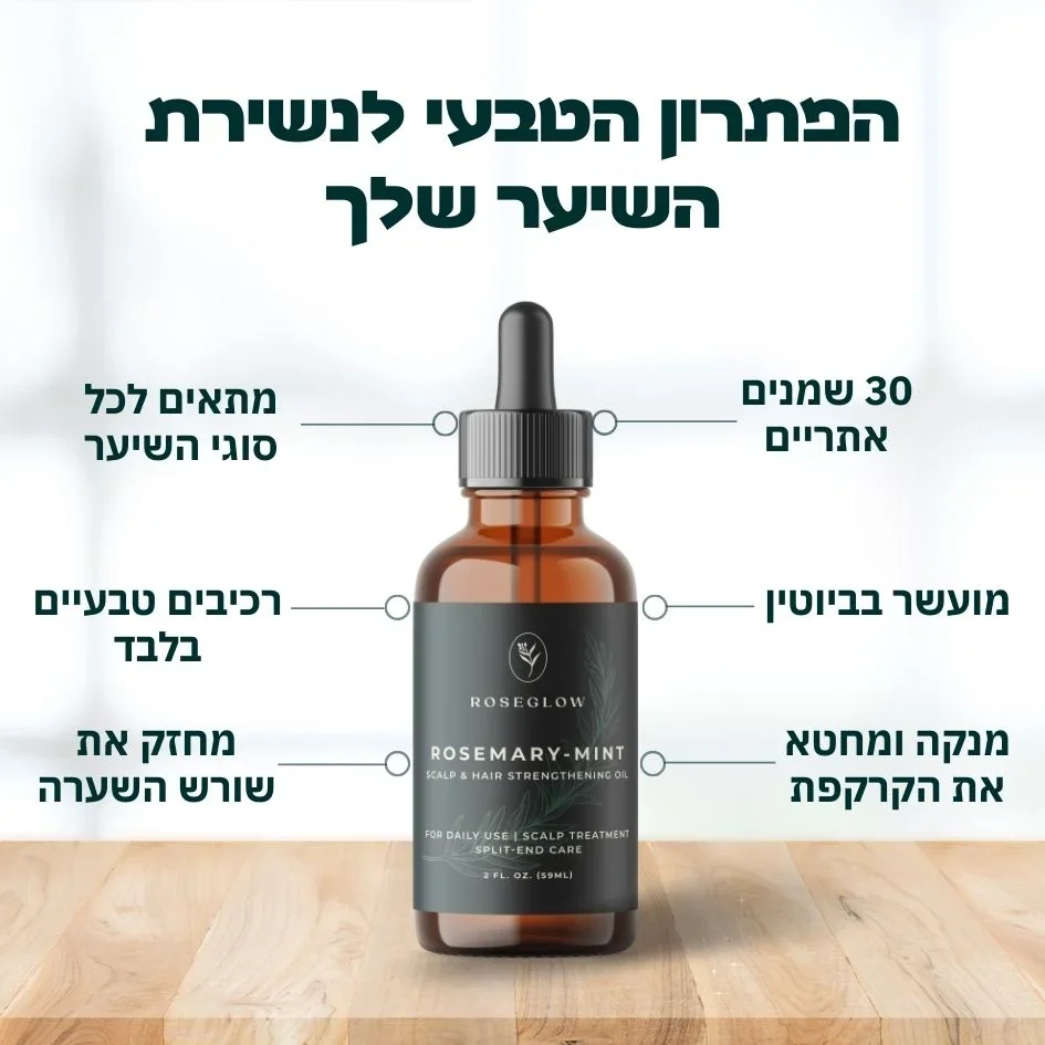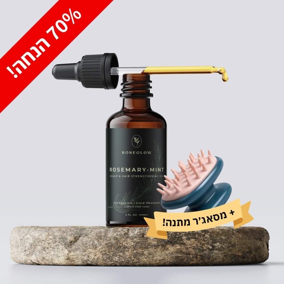 RoseGlow - שמן רוזמרין לחיזוק וצמיחת השיער - עכשיו בהנחה הכי גדולה השנה!